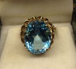 32 10KT Stamped Yellow Gold Ladies Blue Topaz Ring with a Bright Polish Finish.