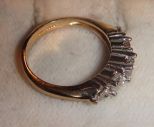 One stamped 14KT yellow gold lady's cast 5 diamond band with a tapered shank with a bright polish finish. Trademark is BOGO. Containing: Five prong set round brilliant cut diamonds, measuring 4.35 - 3.25x 2.28 mm (depth est.) approximate total weight of 5 stones = 1.00 ct. Clarity-SI-2 to I-1; Color- K-M; Cut- Good. Total weight of Diamonds 1.00ct. Total Weight of Band 1.90 dwt. Size 5 1/2 One stamped 14KT yellow gold lady's cast 5 diamond band with a tapered shank with a bright polish finish. Trademark is BOGO. Containing: Five prong set round brilliant cut diamonds, measuring 4.35 - 3.25x 2.28 mm (depth est.) approximate total weight of 5 stones = 1.00 ct. Clarity-SI-2 to I-1; Color- K-M; Cut- Good. Total weight of Diamonds 1.00ct. Total Weight of Band 1.90 dwt. Size 5 1/2