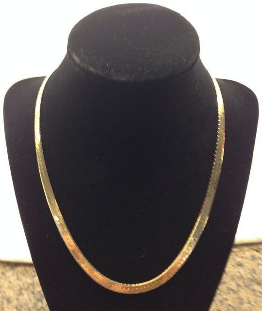 One stamped 14KT yellow gold lady's combination cast and machine made 5.5mm, 18" long Herringbone necklace with a 14kt yellow gold clasp with a bright polish finish. Total Weight of Necklace 12.40 dwt One stamped 14KT yellow gold lady's combination cast and machine made 5.5mm, 18" long Herringbone necklace with a 14kt yellow gold clasp with a bright polish finish. Total Weight of Necklace 12.40 dwt