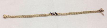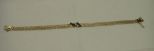 One stamped 14KT yellow gold lady's 7.5" Sapphire and pearl bracelet with a bright polish finish. Containing: Six prong set round standard mixed cut natural blue sapphires, measuring 3.00-2.70 x 0.00mm, approximate total weight of 0.42ct., clarity is slightly included, type II, cut is fair. Sapphires show evidence of heat treatment (internal diffusion, etc) under a standard powered gemological microscope. Heating is an accepted and common enhancement of sapphire and is considered stable. Three cultured fresh water (biwa) pearls, 2.9mm in size to 3.2mm in size. The pearls are white in color with a low luster, very thin nacre, slightly off-round, spotted. Total Weight of Colored Stones 0.42ct. Total Weight of Bracelet 4.50 dwt One stamped 14KT yellow gold lady's 7.5" Sapphire and pearl bracelet with a bright polish finish. Containing: Six prong set round standard mixed cut natural blue sapphires, measuring 3.00-2.70 x 0.00mm, approximate total weight of 0.42ct., clarity is slightly included, type II, cut is fair. Sapphires show evidence of heat treatment (internal diffusion, etc) under a standard powered gemological microscope. Heating is an accepted and common enhancement of sapphire and is considered stable. Three cultured fresh water (biwa) pearls, 2.9mm in size to 3.2mm in size. The pearls are white in color with a low luster, very thin nacre, slightly off-round, spotted. Total Weight of Colored Stones 0.42ct. Total Weight of Bracelet 4.50 dwt