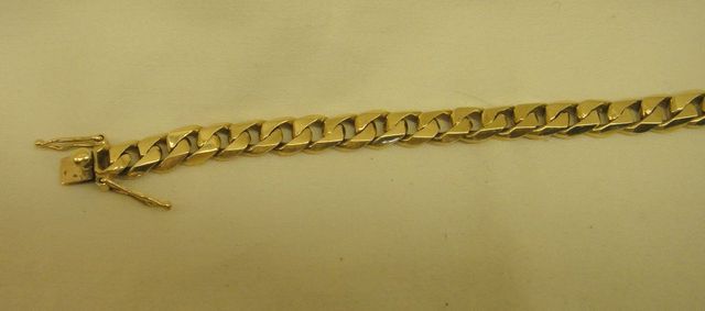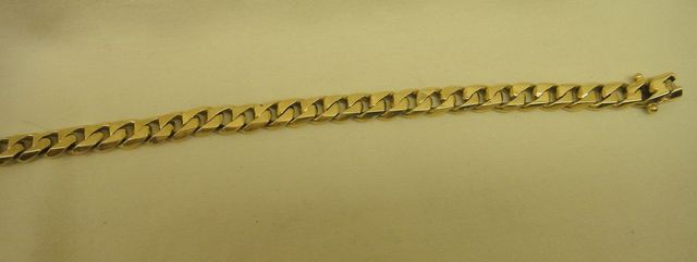84 One stamped 10KT yellow gold uni-sex 7.5mm wide, 9" thick curb link bracelet