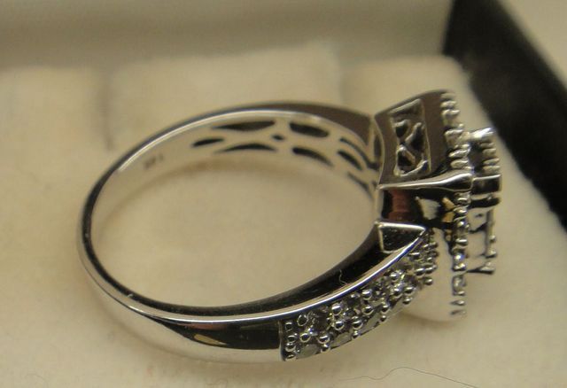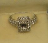 One stamped 14KT white gold lady's cast diamond ring with a bright polish finish. Containing: Three prong set baguette cut diamonds, measuring from 4.20 x 1.50 x 1.28mm (depth est.) to 4.30 x 1.60 x 1.36mm (depth est.) approximate total weight of 3 Stones= 0.24ct. Clarity- SI-2 to I-1; Color- G-H; Cut- Very Good. Thirty-three prong set round brilliant cut diamonds, measuring 2.00-1.80 x 1.14mm (depth est.) approximate total weight of 33 Stones= 0.83ct. Clarity- I-1 to I-2; Color- I-J; Cut-Very Good. Six prong set round brilliant cut diamonds, measuring 1.80-1.50 x 0.99mm (depth est.)approximate total weight of 6 Stones= 0.10ct. Clarity-SI-2 to I-1; Color- H-I; Cut-Good. Total Weight of Diamonds 1.17ct. Total Weight of Ring 3.50 dwt. Size 7 One stamped 14KT white gold lady's cast diamond ring with a bright polish finish. Containing: Three prong set baguette cut diamonds, measuring from 4.20 x 1.50 x 1.28mm (depth est.) to 4.30 x 1.60 x 1.36mm (depth est.) approximate total weight of 3 Stones= 0.24ct. Clarity- SI-2 to I-1; Color- G-H; Cut- Very Good. Thirty-three prong set round brilliant cut diamonds, measuring 2.00-1.80 x 1.14mm (depth est.) approximate total weight of 33 Stones= 0.83ct. Clarity- I-1 to I-2; Color- I-J; Cut-Very Good. Six prong set round brilliant cut diamonds, measuring 1.80-1.50 x 0.99mm (depth est.)approximate total weight of 6 Stones= 0.10ct. Clarity-SI-2 to I-1; Color- H-I; Cut-Good. Total Weight of Diamonds 1.17ct. Total Weight of Ring 3.50 dwt. Size 7