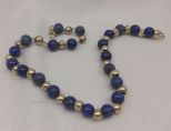 139 One stamped 14KT yellow gold lady's 7.5" Lapis bead bracelet