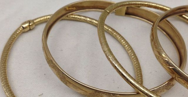 160 Five stamped 10KT yellow gold lady's Bangle bracelets