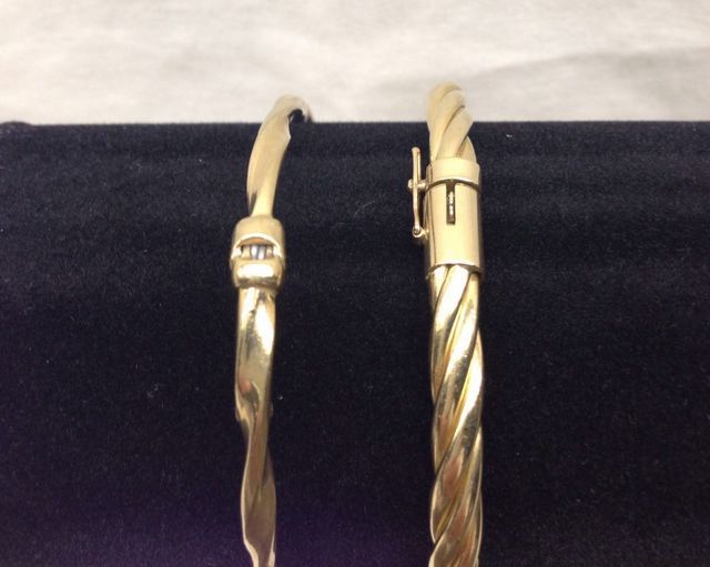 Two stamped 10KT yellow gold lady's bangle bracelets with a bright polish finish. Total Weight of Bracelets 9.70 dwt Two stamped 10KT yellow gold lady's bangle bracelets with a bright polish finish. Total Weight of Bracelets 9.70 dwt