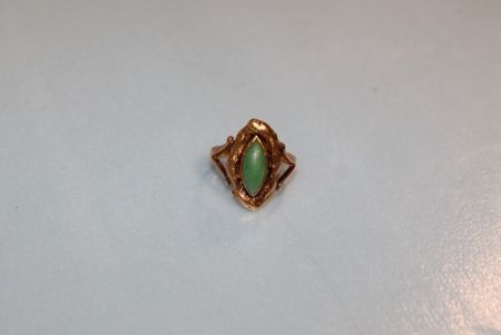Ladies ring with center, emerald green stone. Size 5 1/2. Ladies ring with center, emerald green stone. Size 5 1/2.