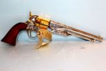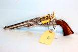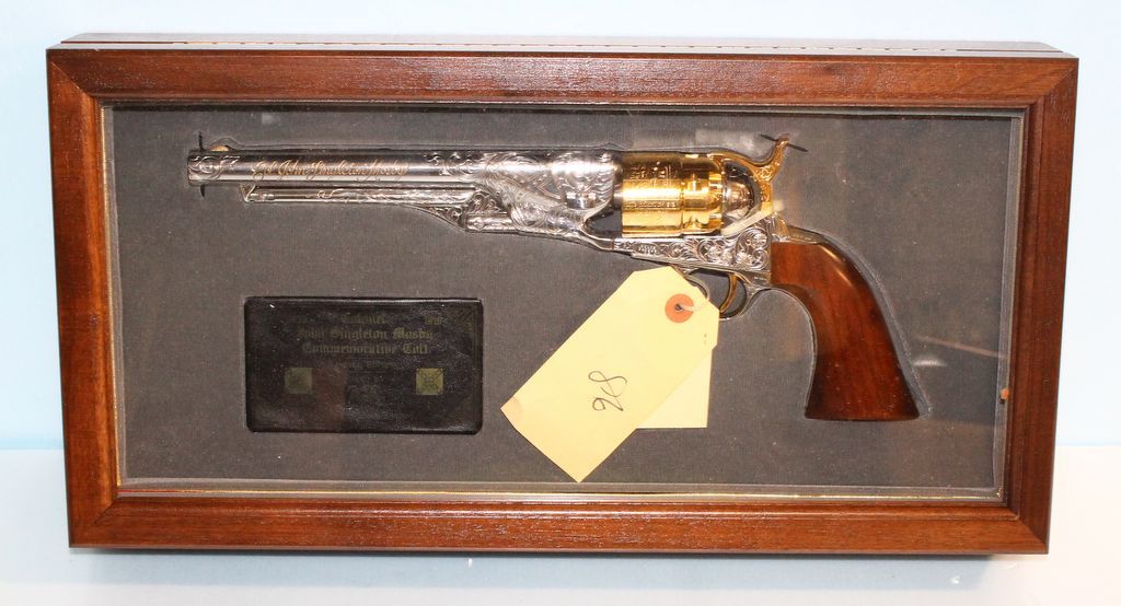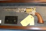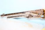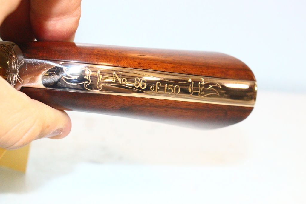 86 0f 150, Cal. 44, black powder, display case with Mosby holster, new in box, stainless steel, hand engraved. Serial: 086 86 0f 150, Cal. 44, black powder, display case with Mosby holster, new in box, stainless steel, hand engraved. Serial: 086