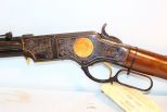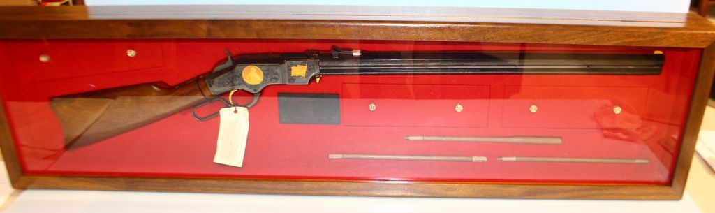 1 of 250, Iron Frame, Cal. 44-40, hand engraved, display box, with cleaning rod, new in box, blue with 24 karat gold plating, has rust spots. Serial: 06392 1 of 250, Iron Frame, Cal. 44-40, hand engraved, display box, with cleaning rod, new in box, blue with 24 karat gold plating, has rust spots. Serial: 06392