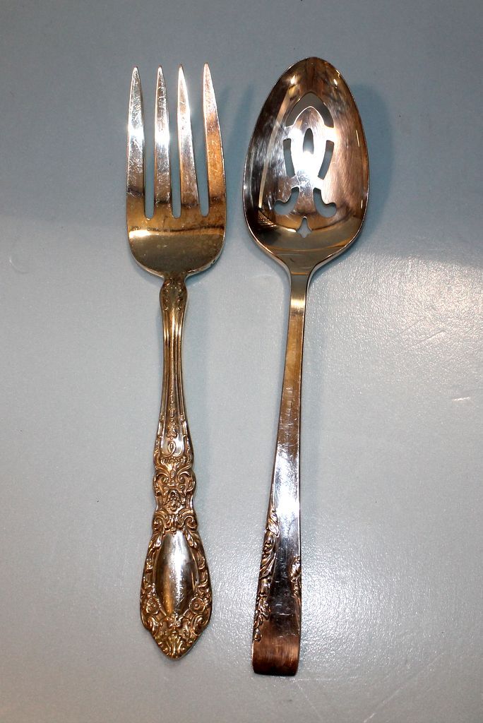 Includes twelve dinner forks, twelve dinner knives, seventeen salad forks, sixteen teaspoons, one jelly spoon, one meat fork, one cheese server, four large serving spoons, one silverplate serving spoon; 65 total pieces Includes twelve dinner forks, twelve dinner knives, seventeen salad forks, sixteen teaspoons, one jelly spoon, one meat fork, one cheese server, four large serving spoons, one silverplate serving spoon; 65 total pieces