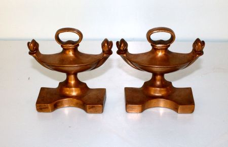 Pair of brass Aladdin lamp bookends; 4 1/4" h. Pair of brass Aladdin lamp bookends; 4 1/4" h.