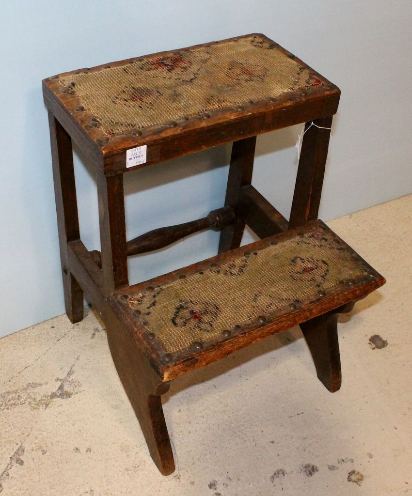 Victorian bed steps with original carpet on steps; 13 1/2" w., 14" d., 19" h. Victorian bed steps with original carpet on steps; 13 1/2" w., 14" d., 19" h.