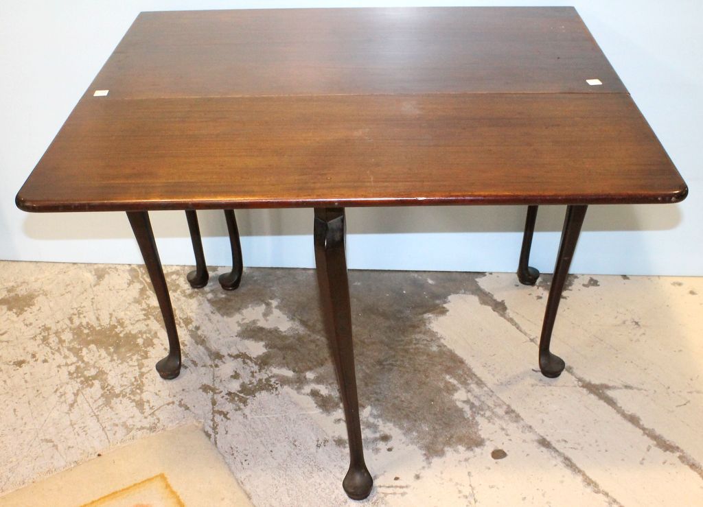 Early 20th century Queen Ann style drop leaf table; 42" w., 23 1/2" d., 30" h. ; 2 leaves, 16" Early 20th century Queen Ann style drop leaf table; 42" w., 23 1/2" d., 30" h. ; 2 leaves, 16"