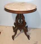 19th century Victorian white oval marble top table; 25" w., 20" d., 29" h. 19th century Victorian white oval marble top table; 25" w., 20" d., 29" h.