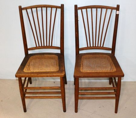 Two fan back side chairs with cane seats; 15" w., 14" d., 34" h. Two fan back side chairs with cane seats; 15" w., 14" d., 34" h.