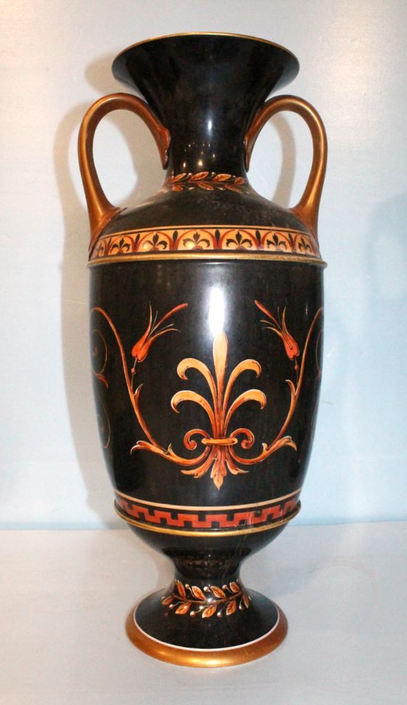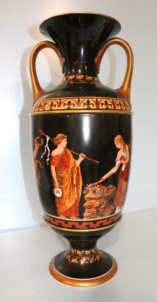 19th century Genori Italian porcelain vases in classical design; 21" h. 19th century Genori Italian porcelain vases in classical design; 21" h.