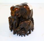 Vintage bronze carving of seven elephants; 4" w., 4" h. Vintage bronze carving of seven elephants; 4" w., 4" h.