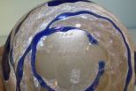 Signed Boda art glass bowl with blue and gold iridescent design. Signed by artist Vallien on bottom #58015 ; 6" dia., 4 1/2" h. Signed Boda art glass bowl with blue and gold iridescent design. Signed by artist Vallien on bottom #58015 ; 6" dia., 4 1/2" h.