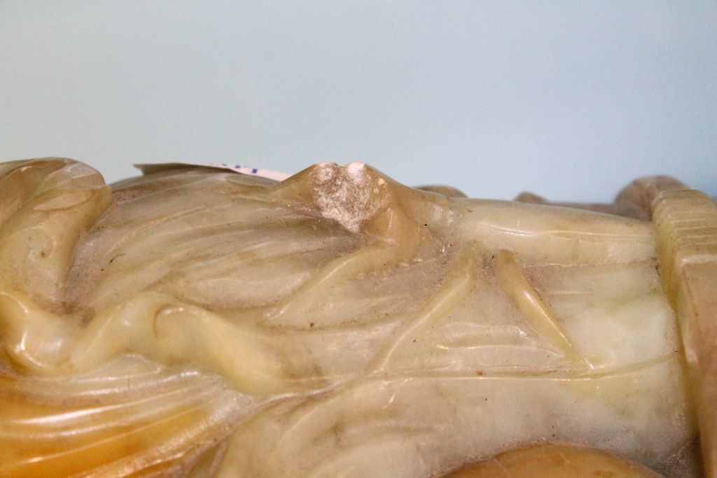 Unique carved marble basket with fruit. Basket has chips or wear on entire piece with larger chip on top; 10 1/2" w., 5 1/2" h. Unique carved marble basket with fruit. Basket has chips or wear on entire piece with larger chip on top; 10 1/2" w., 5 1/2" h.