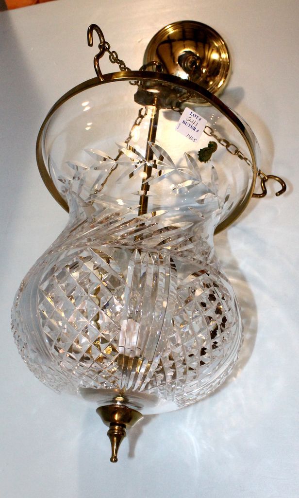 Waterford (paper label) crystal foyer fixture; 23" h., 9 7/8" dia. Waterford (paper label) crystal foyer fixture; 23" h., 9 7/8" dia.