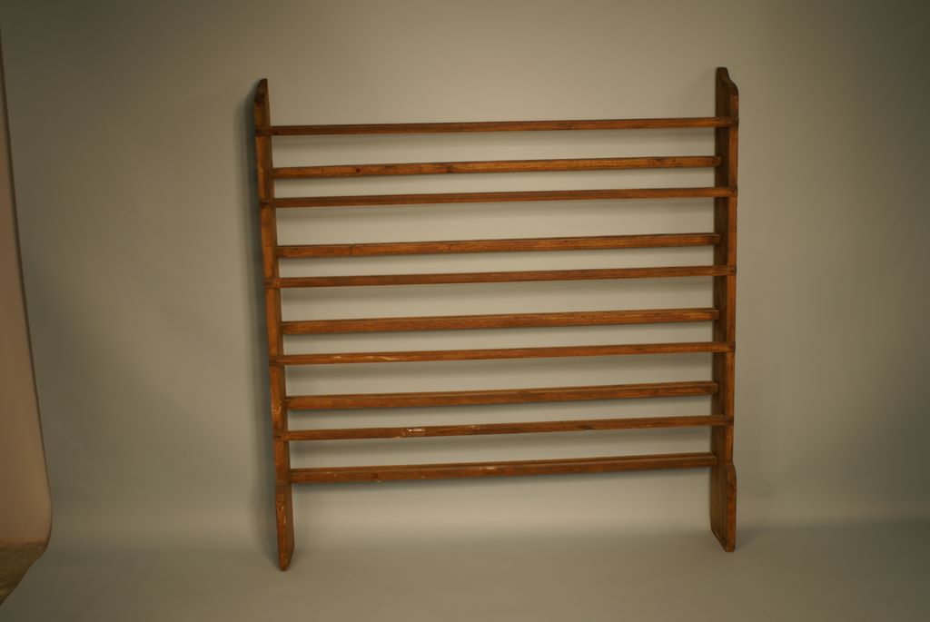 Hanging Plate Rack from New England, last quarter 19th Century, with five plate shelves, pegged and in pine. w. 49" h. 51" Hanging Plate Rack from New England, last quarter 19th Century, with five plate shelves, pegged and in pine. w. 49" h. 51"