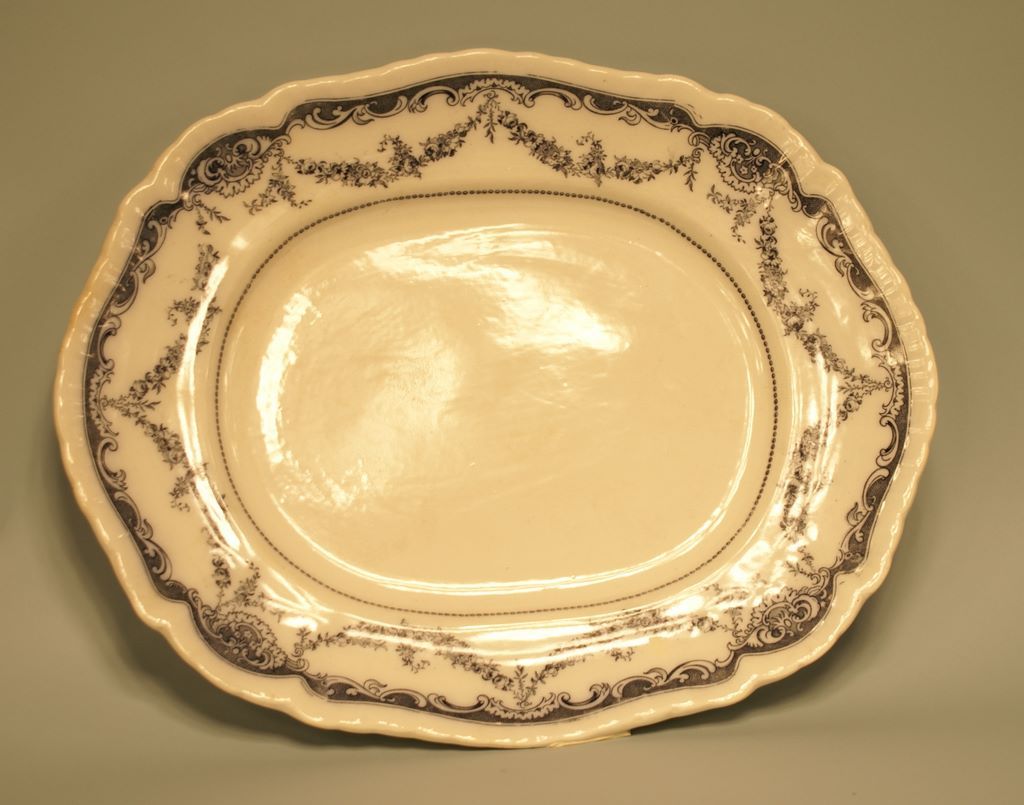 Ironstone Platter, an attractive Booth's, Staffordshire, blue transfer-printed ironstone ovoid roasted meats platter in "Cheswick" decor, fourth quarter 19th century, w. 20-1/8" x 16-1/4" Ironstone Platter, an attractive Booth's, Staffordshire, blue transfer-printed ironstone ovoid roasted meats platter in "Cheswick" decor, fourth quarter 19th century, w. 20-1/8" x 16-1/4"