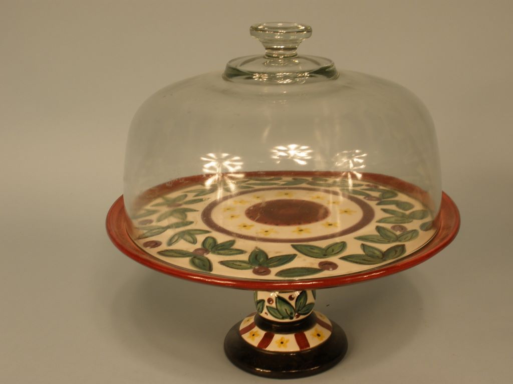 311 Hand Painted Porcelain Cake Stand with Dome, Artist Signed