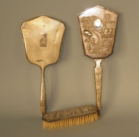 Sterling Silver Mirror and Brush Set, w. 4-1/2", h. 12" Sterling Silver Mirror and Brush Set, w. 4-1/2", h. 12"