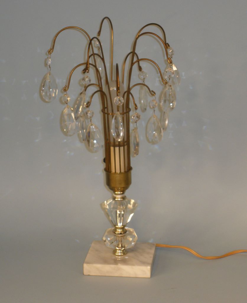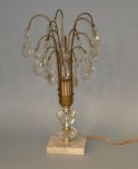 Unusual Brass and Glass Table Lamp, with tear drop glass prisms and marble base. H. 17" Unusual Brass and Glass Table Lamp, with tear drop glass prisms and marble base. H. 17"