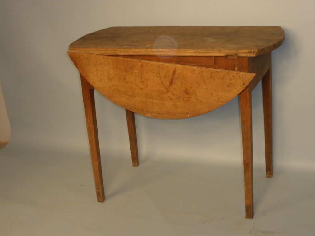 Small primitive drop leaf work table, one drop side missing. W. 34-1/2", d. 18", h. 27-3/4" Small primitive drop leaf work table, one drop side missing. W. 34-1/2", d. 18", h. 27-3/4"