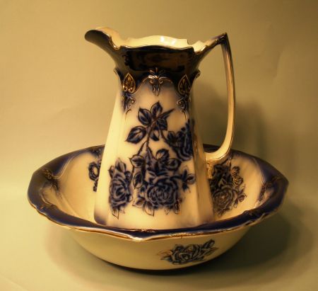 466 Flow Blue Bowl and Pitcher