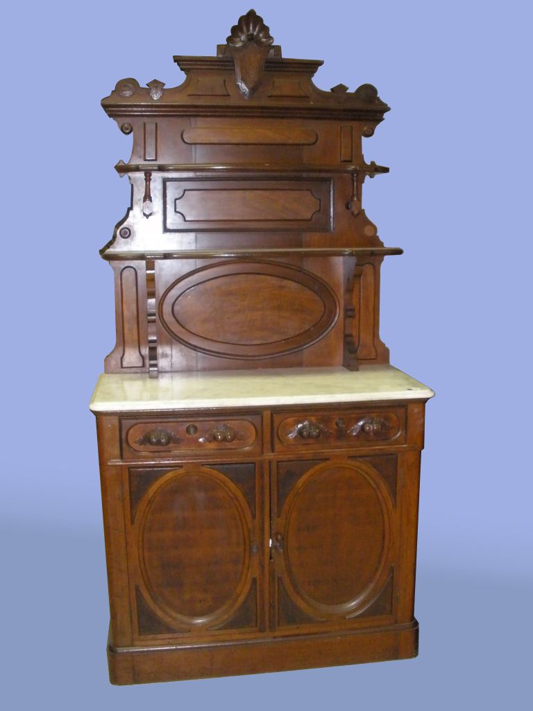 Beautiful Walnut Cameo Cabinet with marble top, in excellent condition. W. 42", h. 86" depth 18 1/2". Beautiful Walnut Cameo Cabinet with marble top, in excellent condition. W. 42", h. 86" depth 18 1/2".