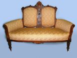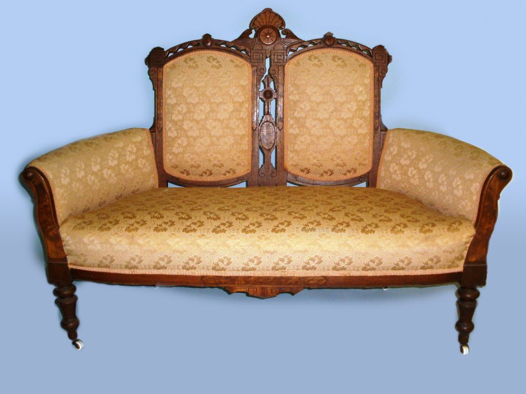 Eastlake Parlor Set, consisting of Settee and matching chair, with porcelain casters, both with the best look. Circa. 1900. Couch 57" w, 42 1/2 h, Chair 24" w., 41 1/2 h. Eastlake Parlor Set, consisting of Settee and matching chair, with porcelain casters, both with the best look. Circa. 1900. Couch 57" w, 42 1/2 h, Chair 24" w., 41 1/2 h.