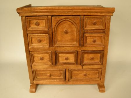 Handmade cabinet with 9 drawers and one cabinet door. W. 15-1/2", d. 8-1/4", h. 16" Handmade cabinet with 9 drawers and one cabinet door. W. 15-1/2", d. 8-1/4", h. 16"