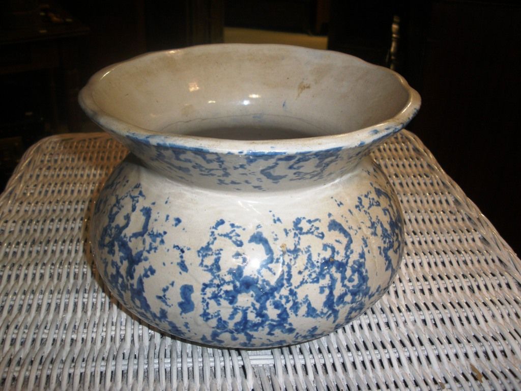 503A American Blue-Sponged White-Glazed Stoneware Spittoon