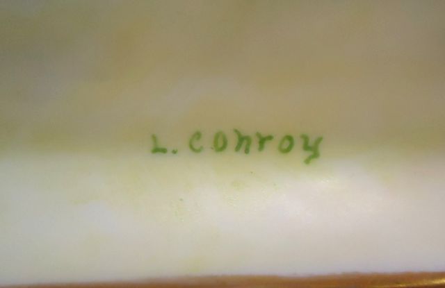 Signed L. conroy oblong dish with lemons 13 1/2" L. x 6" w. Signed L. conroy oblong dish with lemons 13 1/2" L. x 6" w.