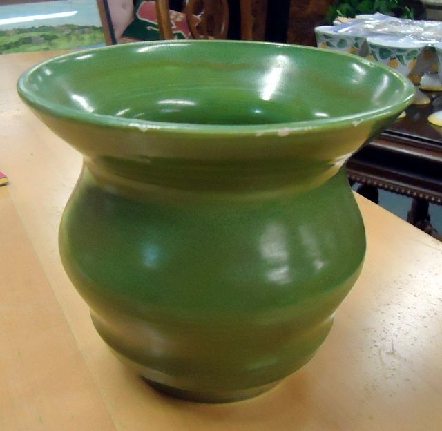 Green Spitton Shaped Vase 5 1/2"h. Green Spitton Shaped Vase 5 1/2"h.