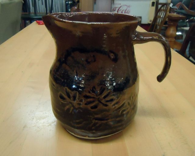 Brown Pottery Pitcher 6"h. Brown Pottery Pitcher 6"h.
