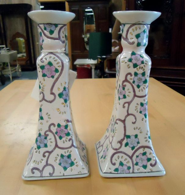 Vintage Oriental Candle Holders Porcelain with floral designs 8 1/4" Vintage Oriental Candle Holders Porcelain with floral designs 8 1/4"