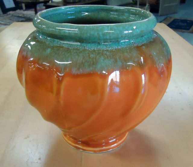 Vintage Swirl urn vase, orange and green color 6 1/4" Vintage Swirl urn vase, orange and green color 6 1/4"