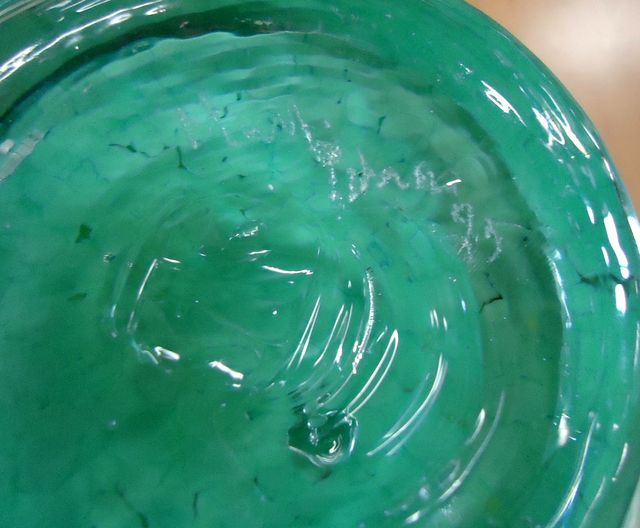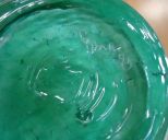 Green hand blown glass vase, signed. 6 3/4" Green hand blown glass vase, signed. 6 3/4"