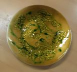 Bovano of Cheshire enamel plate, gold and green 8" Bovano of Cheshire enamel plate, gold and green 8"