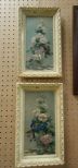 Pair of pictures with blue flowers and white frames, 14 3/4"h. x 9"w. Pair of pictures with blue flowers and white frames, 14 3/4"h. x 9"w.