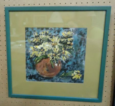 Daisy picture w/ blue frame, signed, 18"h. x 18 1/2"w. Daisy picture w/ blue frame, signed, 18"h. x 18 1/2"w.