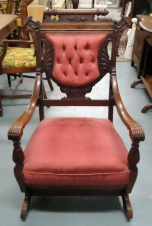 Mahogany Victorian rocker 39 1/2"h x 24"w. Mahogany Victorian rocker 39 1/2"h x 24"w.