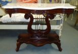 Mahogany Rose Carved Lyre Based Marble Top Entrance Table; 29 3/4"h. x 40 1/4"w. x 18"d. Mahogany Rose Carved Lyre Based Marble Top Entrance Table; 29 3/4"h. x 40 1/4"w. x 18"d.