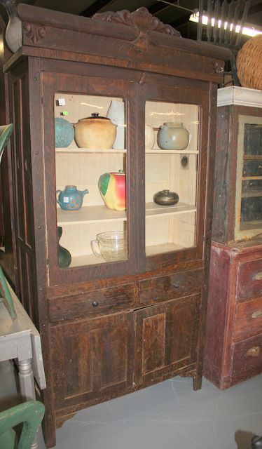 Primitive Painted Kitchen Cabinet; 37" w., 69" h. Primitive Painted Kitchen Cabinet; 37" w., 69" h.