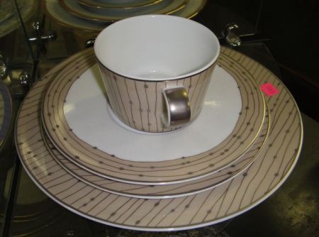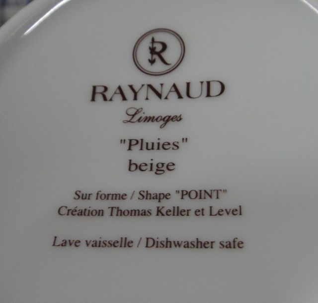 Raynaud Limoge "Pluies" China; cup, saucer, salad and dinner palte Raynaud Limoge "Pluies" China; cup, saucer, salad and dinner palte