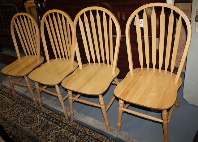 Set of Four Light Wood Kitchen Chairs; 37" h., 18" w. Set of Four Light Wood Kitchen Chairs; 37" h., 18" w.
