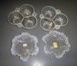 Blue Bump Glass Dishes, two divided dishes Blue Bump Glass Dishes, two divided dishes