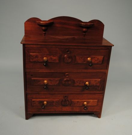 Walnut Victorian Washstand with three drawers and backsplash. 34"h 29"w 12"d Walnut Victorian Washstand with three drawers and backsplash. 34"h 29"w 12"d